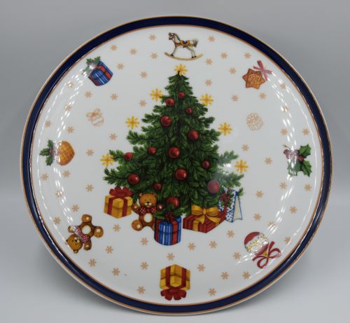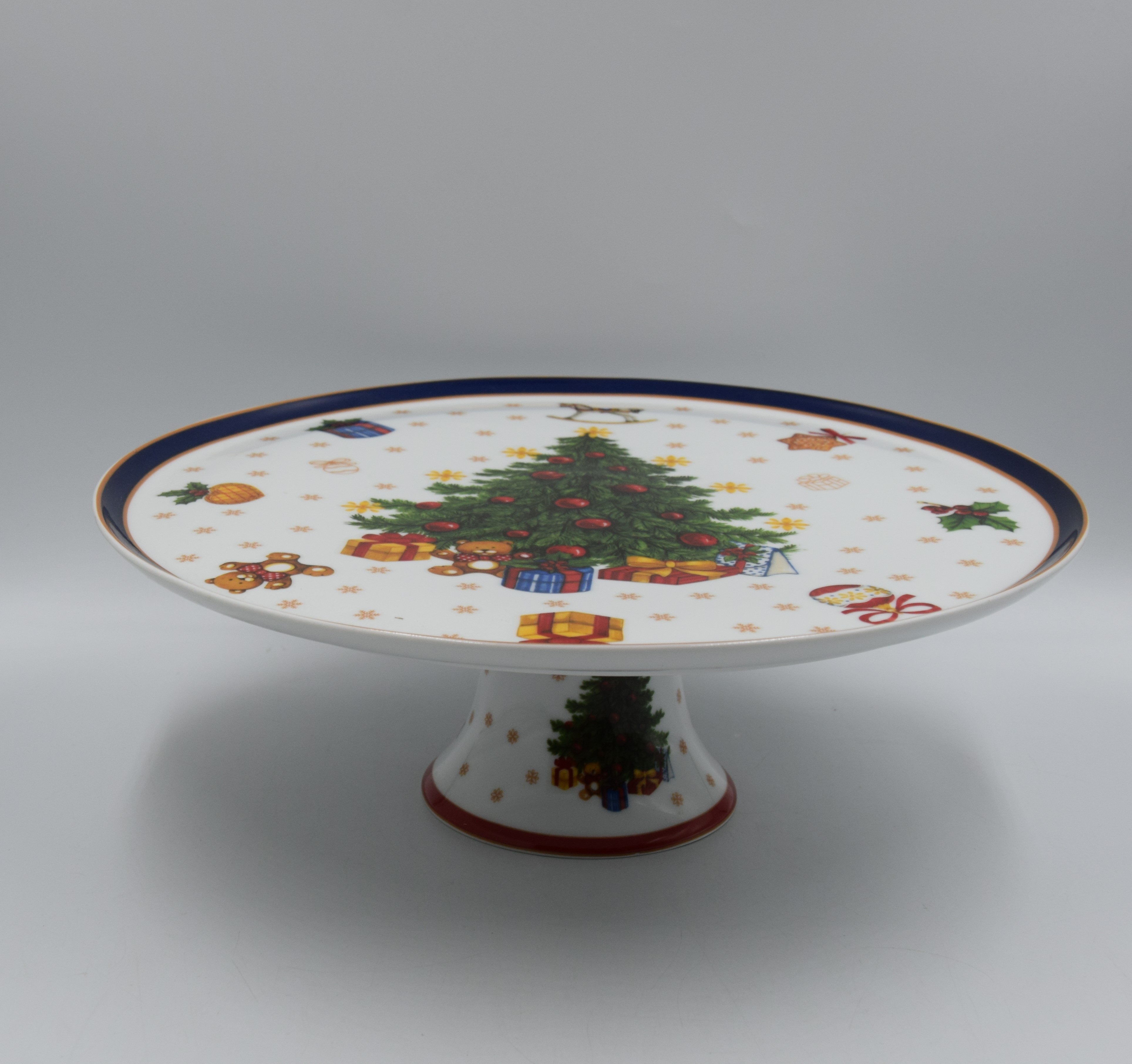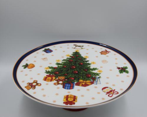 CICHA NOC tortownica/ patera na ciasto na nóżce 31 cm blue