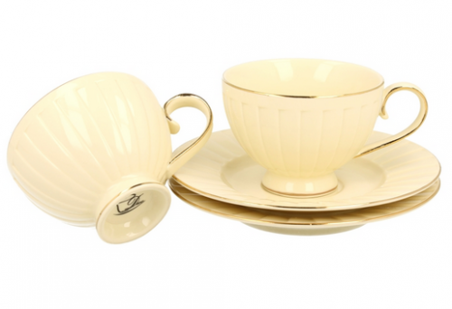 Linia zdobiona jest eleganckimi pionowymi ryflowaniami z subtelnym złotym wykończeniem, które nadaje kolekcji wyjątkowego charakteru. Jest to również połączenie tradycyjnego rzemiosła z nowoczesnym designem. Dzięki neutralnej kolorystyce ecru, naczynia doskonale wpisują się w różnorodne aranżacje wnętrz, dodając im ciepła i elegancji.