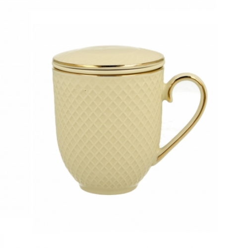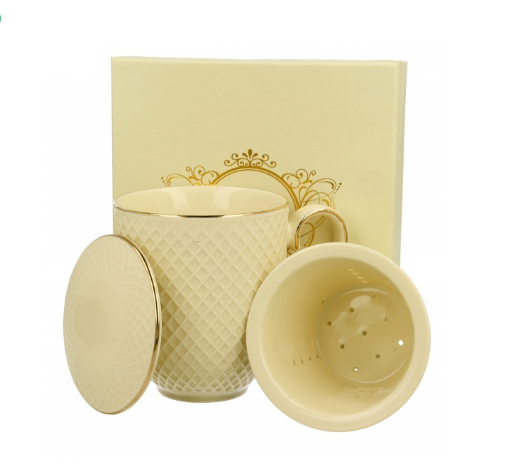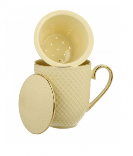 Kubek z zaparzaczem VESPER wchodzący w skład serii ECRU Exclusive, wykonany z porcelany New Bone China w subtelnym kolorze ecru, która charakteryzuje się delikatnym połyskiem oraz wyjątkową wytrzymałością i trwałością, zachowując przy tym lekkość i finezję.