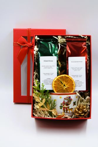 -50g herbata czarna aromatyzowana "Adwentowa" skład: herbata czarna, skórka pomarańczy, jabłko, orzechy, wanilia, aromat