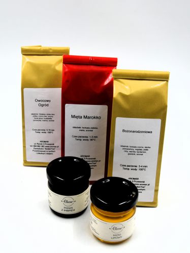 Herbatę i kawę pakujemy do foliowej torebki opatrzonej naklejką z nazwą i wagą. Torebki są zgrzewane z dołączonym specjalnym klipsem umożliwiającym częste otwieranie i zamykanie opakowania. Przedmioty zapakowane przez nas nabierają o wiele większej wartości. Zachwycają osobę która korzysta z naszej usługi jak również obdarowanego, obustronne zadowolenie gwarantowane.