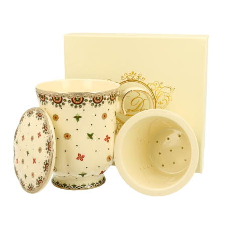 Całość zapakowana w eleganckie pudełko prezentowe, w kolorze ecru, które harmonijnie współgra z porcelaną. Idealnie sprawdzi się nie tylko podczas codziennych ceremonii picia herbaty, ale również na wyjątkowych okazjach, gdzie elegancja jest na pierwszym miejscu. Dzięki starannie przemyślanej formie i detalom, z pewnością zachwyci każdego, kto ceni sobie estetykę i jakość. To idealny pomysł na prezent dla bliskiej osoby lub jako wyjątkowy dodatek do Twojej własnej kolekcji.