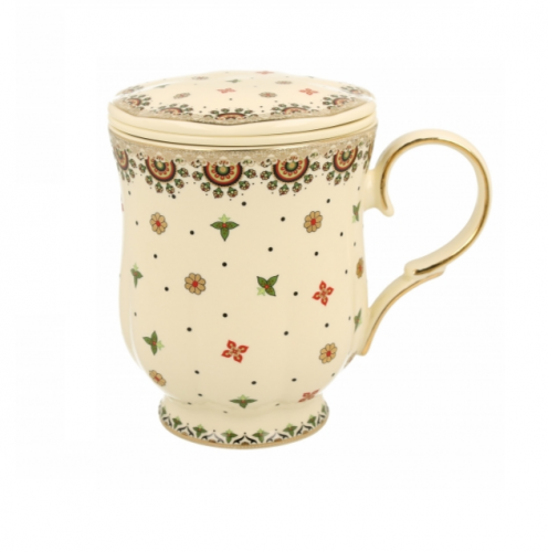 Kubek z zaparzaczem CASABLANCA wchodzący w skład serii ECRU Exclusive, wykonany z porcelany New Bone China w subtelnym kolorze ecru, która charakteryzuje się delikatnym połyskiem oraz wyjątkową wytrzymałością i trwałością, zachowując przy tym lekkość i finezję.